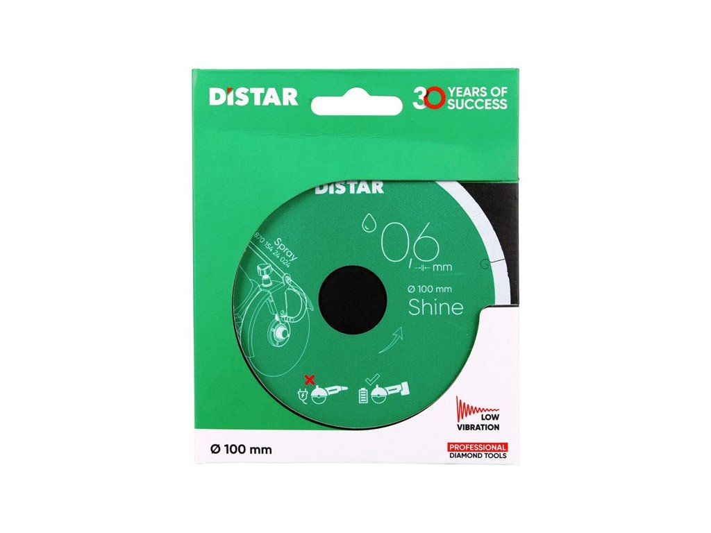 Diamantový řezný kotouč Distar Shine 100mm / 125 mm je snem každého profesionála, který vyžaduje čistý a precizní řez keramiky či porcelánové dlažby bez nutnosti dodatečného opracování. Díky ultratenké řezné vrstvě o tloušťce pouhých 0,6 mm a jemnozrnnému diamantu kotouč řeže bez odštěpků a nerovností – výsledkem je perfektní hrana hned na první pokus. Zapomeňte na ruční broušení, ušetřete čas a zvyšte svou produktivitu.