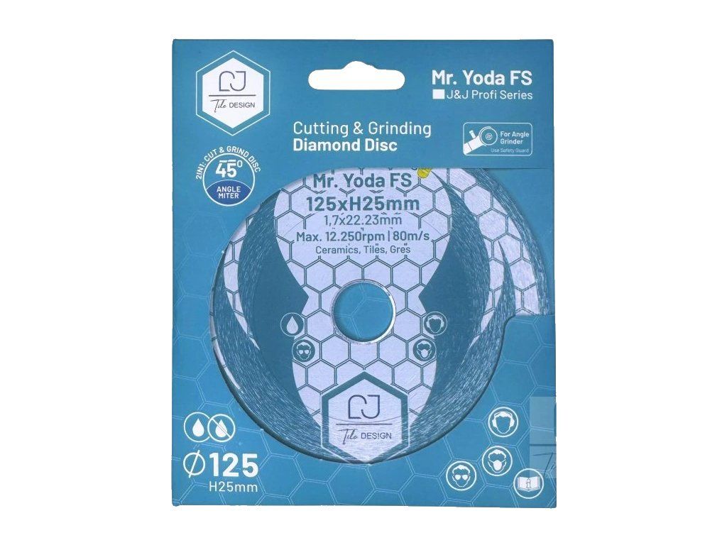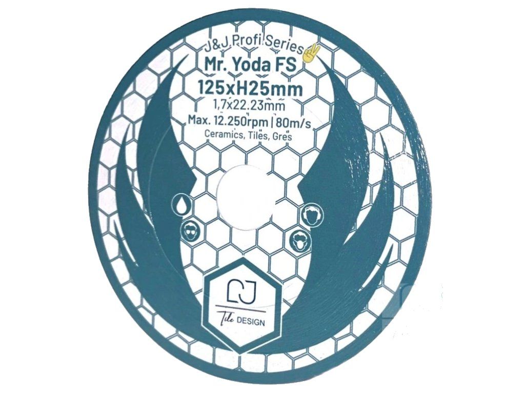 Kotouč Mr. Yoda FS je špičkový nástroj určený pro profesionální zpracování keramiky, dlažby a gresu. Díky speciální konstrukci s vysokým diamantovým segmentem (25 mm) umožňuje nejen rychlé a rovné dělení materiálu pod úhlem 90°, ale především exceluje při jemném zabrušování hran a vytváření dokonalých kamenických rohů (jolly) bez otřepů.